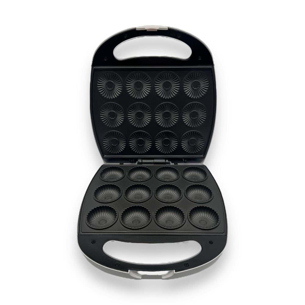 جهاز كهربائي متخصص لتحضير المعمول التقليدي من ماركة جانو، مصمم بتصميم عملي باللون الأسود الأنيق. تتميز بقوالب مميزة تصنع 12 قطعة معمول بنقوش تقليدية جميلة في وقت واحد، وتعمل بقوة عالية تبلغ 1400 واط لتسخين سريع ونتائج مثالية.
