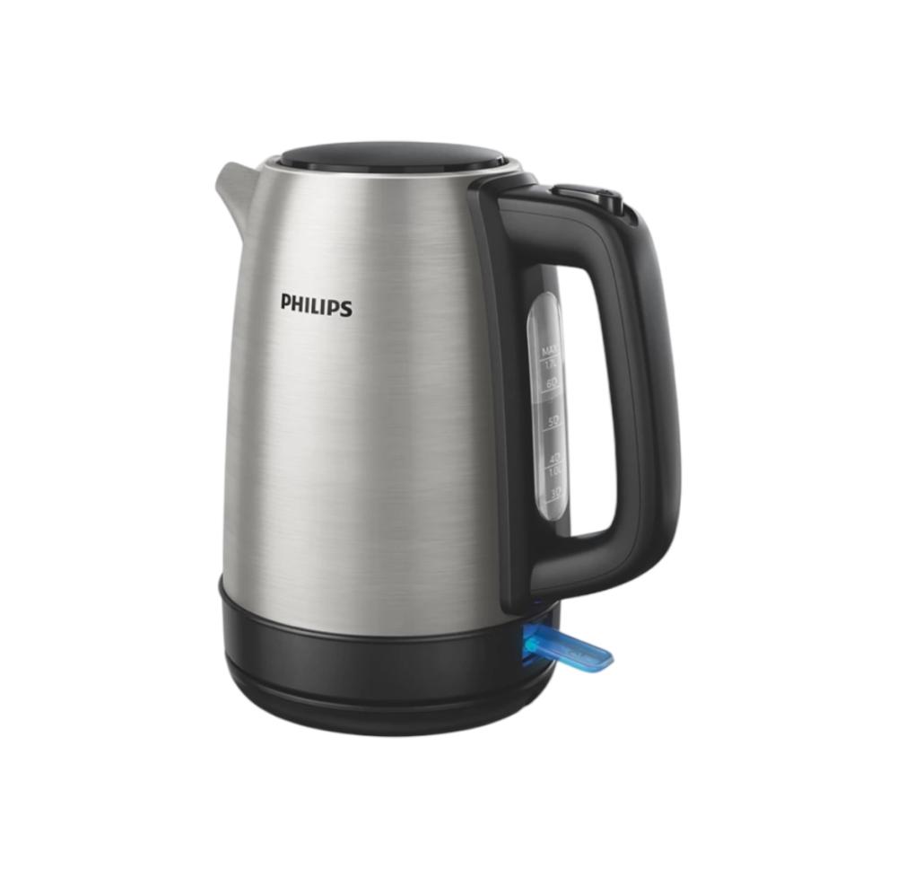 غلاية فيليبس HD9350 تجمع بين الأداء العالي والتصميم العصري المصنوع من الفولاذ المقاوم للصدأ، لتمنحك تجربة غلي سريعة وآمنة مع لمسة من الأناقة الأوروبية.